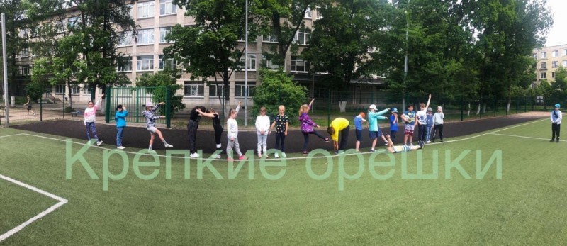 В честь этого дня в лагере прошел праздник Спорта. Ребята играли с артистами из театрального общества "Малая Охта" в подвижные командные игры.